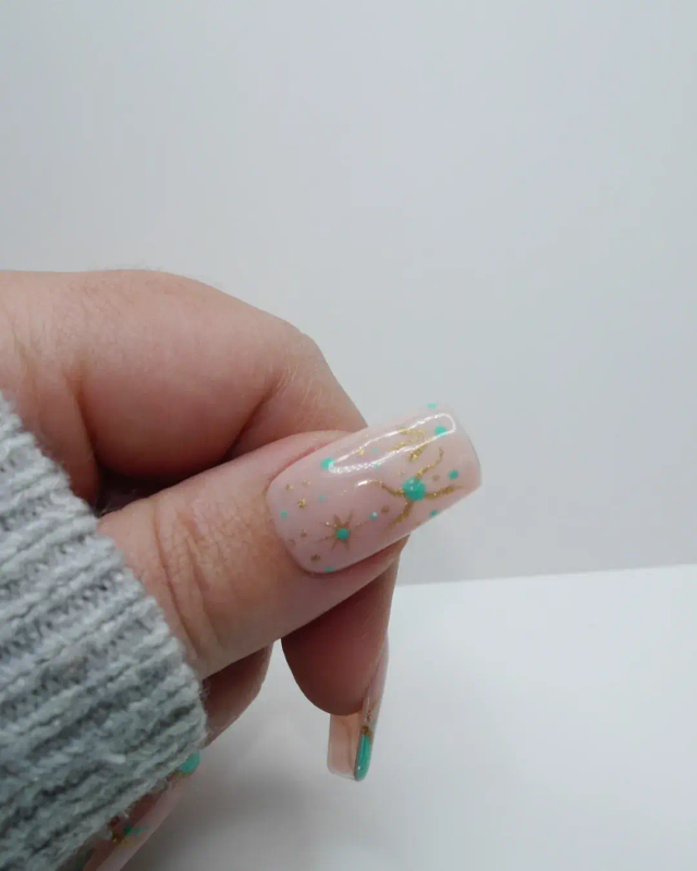 Bohème 2.0 c'est une base nude avec des motifs en doré et une jolie couleur bleu turquoise qui rappelle l'eau de la piscine !